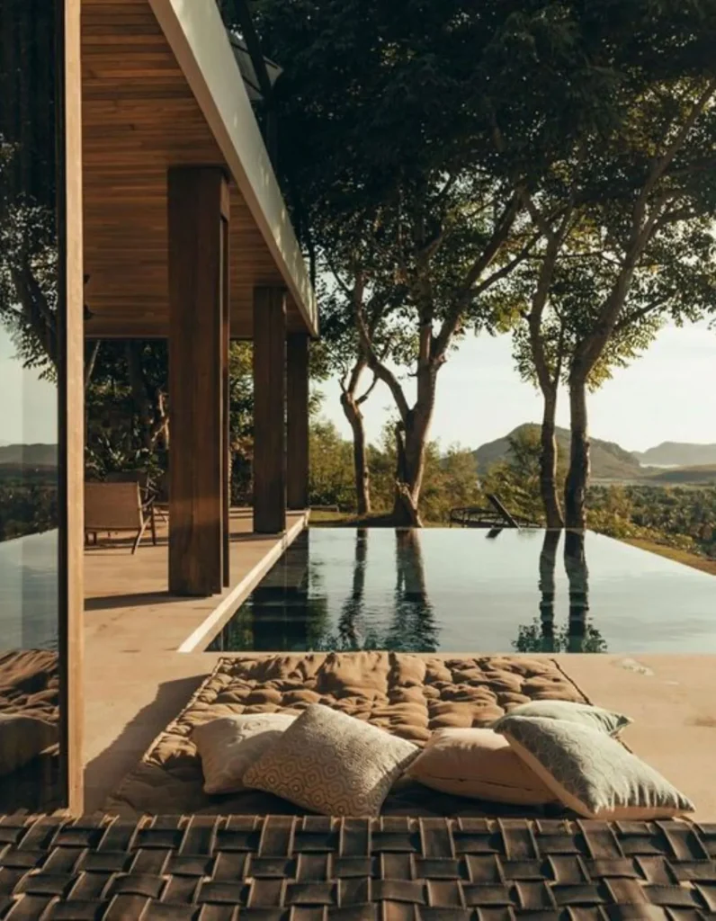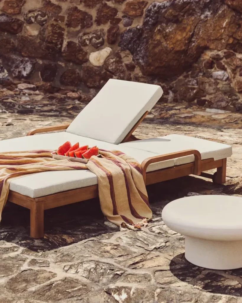 Pensé comme un véritable lit d’extérieur, il offre une surface de repos plus vaste, idéale pour s’allonger seul ou partager un moment à deux. Inspiré des aménagements d’hôtels et de resorts, il s’invite désormais dans les jardins particuliers avec des lignes plus élégantes et des matériaux soigneusement choisis. Installé au bord d’une piscine ou sur une terrasse, il suffit souvent à lui seul à créer une atmosphère presque vacancière.